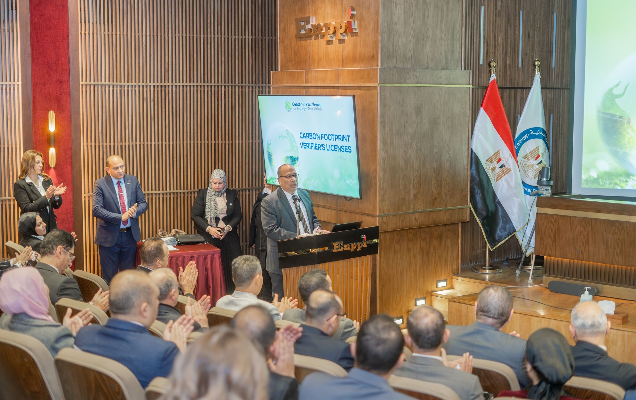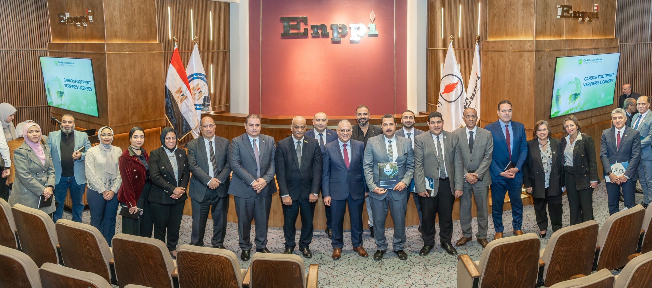 As a significant step toward achieving sustainable development goals and supporting the Ministry of Petroleum and Mineral Resources strategy to reduce carbon emissions, while strengthening strategic and effective partnerships among Egyptian petroleum sector companies, a special graduation ceremony was held under the sponsorship of Enppi, EPROM, and the Egyptian Organization for Standardization and Quality (EOS) on February 24th at Enppi’s headquarters. The event marked the completion of the training program organized by the Center of Excellence for Energy Transition, aimed at qualifying 28 engineers from various petroleum sector companies to obtain the “Carbon Footprint Verifier’s License.”